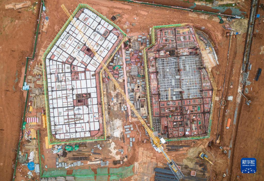 这是在海南文昌国际航天城拍摄的建设中的太空实验室文昌基地(一期工程)项目(无人机照片,7月16日摄)。
