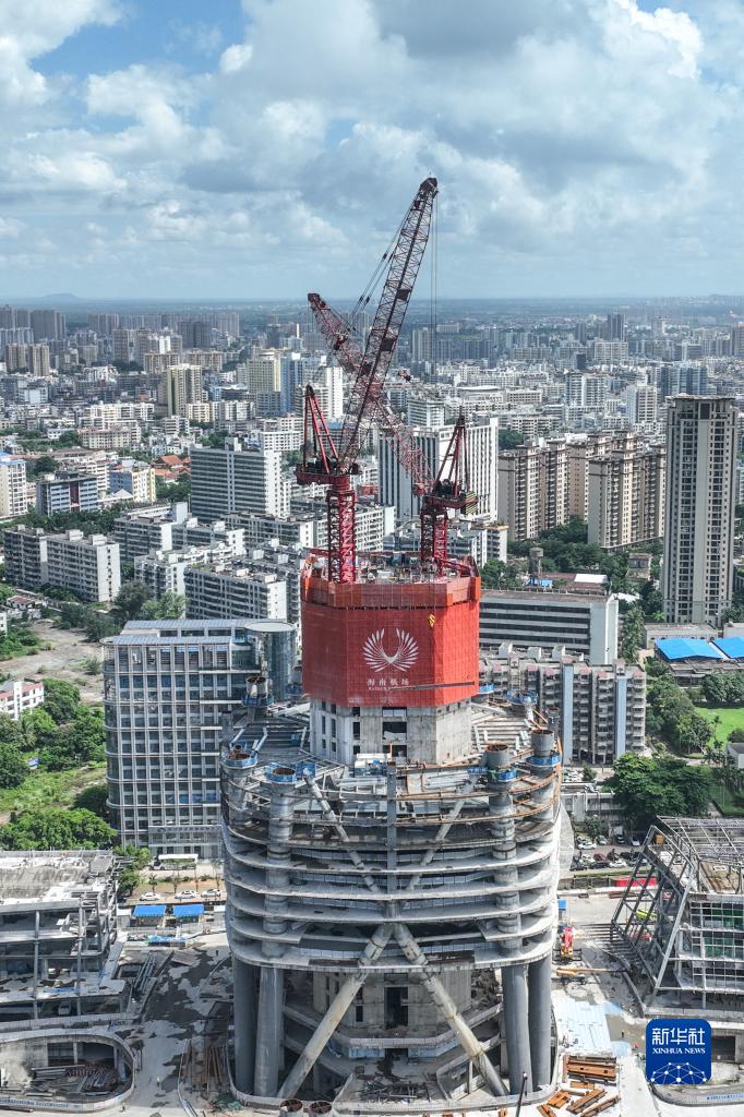 由中建三局承建、海南控股旗下海南机场股份投资建设的海口市海南中心项目正加紧施工。据悉,海南中心总建筑高度达428米,集观光游览、超五星级酒店、高级写字楼、精品商业等多功能于一体,项目建成后将刷新海口天际线,成为海南第一高楼。