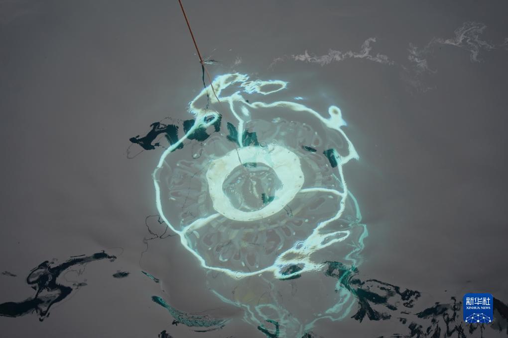 7月22日,中国第13次北冰洋科学考察队进行大洋作业演练,这是刚刚被布放入海的CTD(温盐深多参数海洋观测系统)。