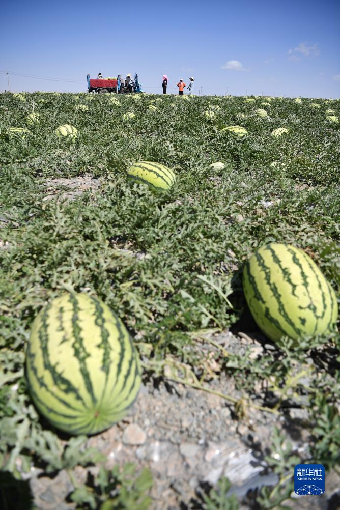 近日,宁夏中卫市沙坡头区兴仁镇、香山乡等地硒砂瓜迎来收获季节。据了解,近年来当地通过覆膜、节水灌溉等方式提升科学种植技术,推动硒砂瓜产业提质升级,产品远销北京、上海、海南、湖北等地。