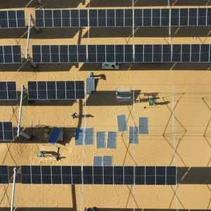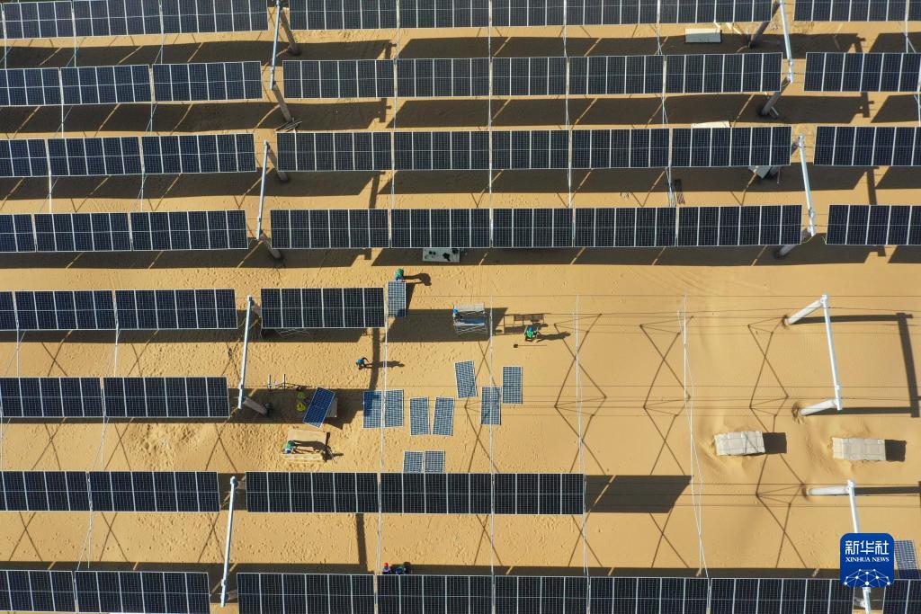 近日,位于内蒙古杭锦旗库布其沙漠亿利生态示范区的蒙西基地库布其200万千瓦光伏治沙项目进入光伏板安装环节。据了解,该项目总投资111.5亿元,包括200万千瓦光伏场区、10万亩沙漠治理生态建设工程等。项目预计2024年底前实现全容量并网发电,建成后年平均可供应绿色电力约40亿千瓦时。