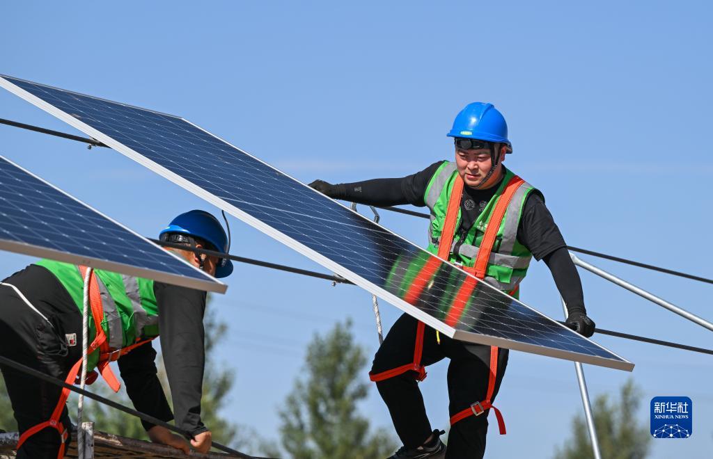 近日,位于内蒙古杭锦旗库布其沙漠亿利生态示范区的蒙西基地库布其200万千瓦光伏治沙项目进入光伏板安装环节。据了解,该项目总投资111.5亿元,包括200万千瓦光伏场区、10万亩沙漠治理生态建设工程等。项目预计2024年底前实现全容量并网发电,建成后年平均可供应绿色电力约40亿千瓦时。