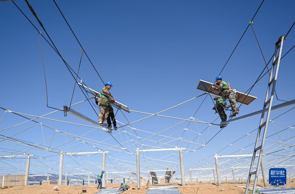 近日,位于内蒙古杭锦旗库布其沙漠亿利生态示范区的蒙西基地库布其200万千瓦光伏治沙项目进入光伏板安装环节。据了解,该项目总投资111.5亿元,包括200万千瓦光伏场区、10万亩沙漠治理生态建设工程等。项目预计2024年底前实现全容量并网发电,建成后年平均可供应绿色电力约40亿千瓦时。
