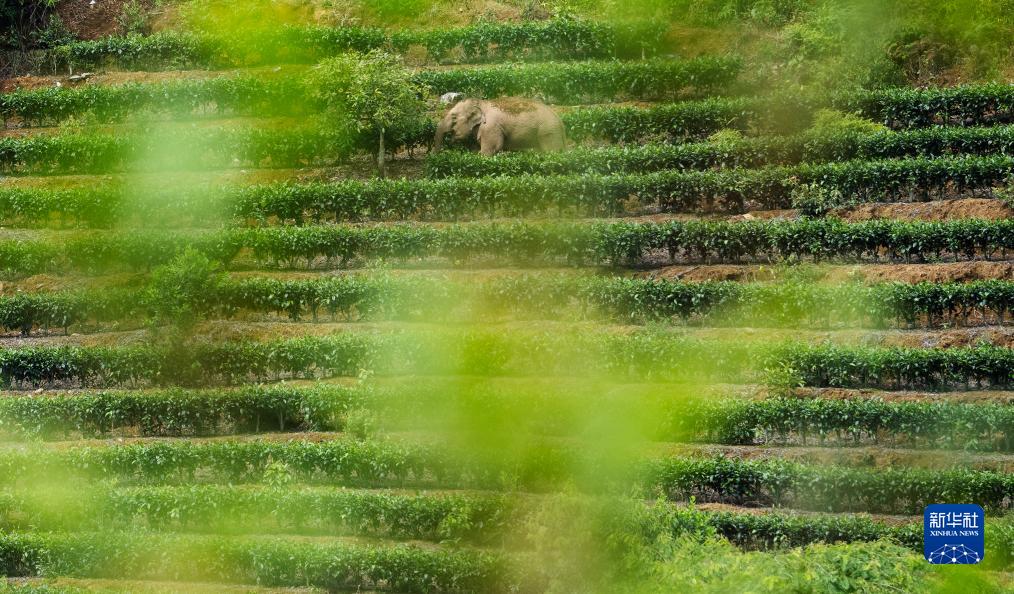 7月20日,在云南省江城县,一头亚洲象在取食芒果。