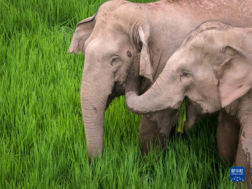 这是7月19日在云南省江城县拍摄的亚洲象(无人机照片)。