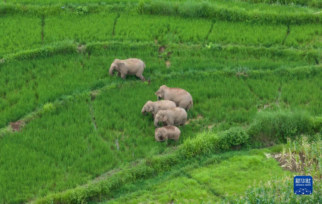 这是7月19日在云南省江城县拍摄的亚洲象(无人机照片)。