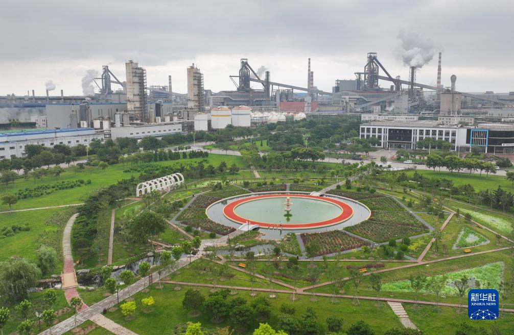 首钢京唐钢铁联合有限责任公司厂区一角(7月22日摄,无人机照片)。