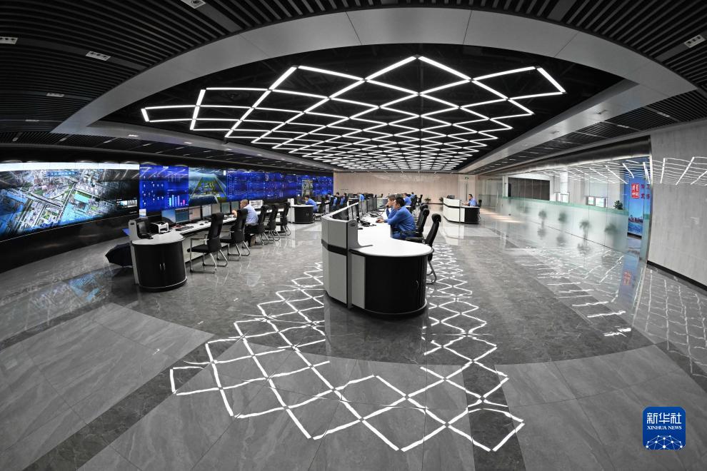 首钢京唐钢铁联合有限责任公司工作人员在生产管控中心工作(7月22日摄)。