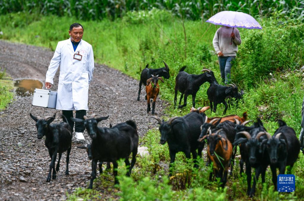 朱大清出诊途中遇到一牧羊人(7月19日摄)。
