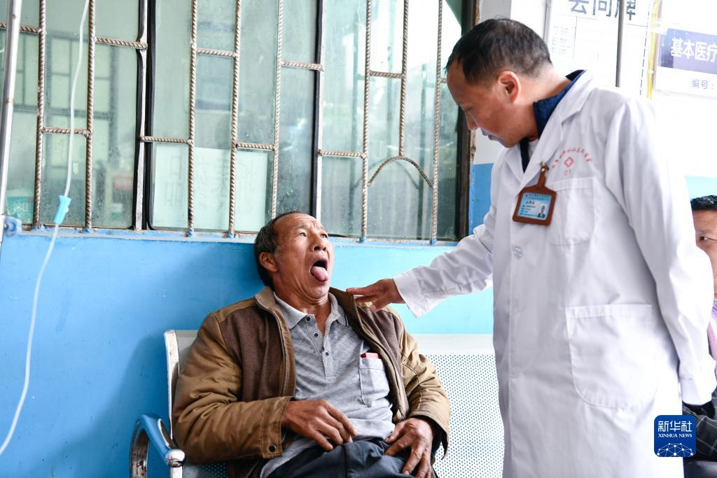 朱大清在村卫生室查看患者身体恢复情况(7月19日摄)。