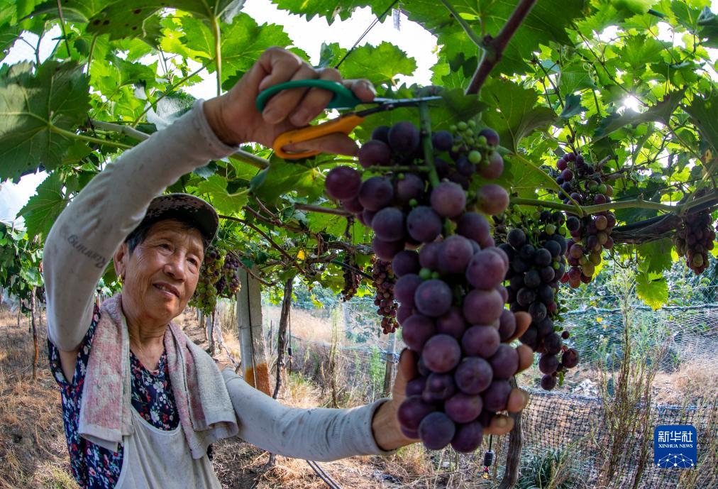 7月23日,果农在江苏省泰州市姜堰区顾高镇塘桥村天地农业园采摘葡萄。