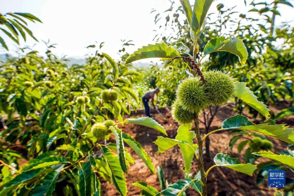 7月23日,河北省遵化市侯家寨镇农民在栗树果园整理树下土地。