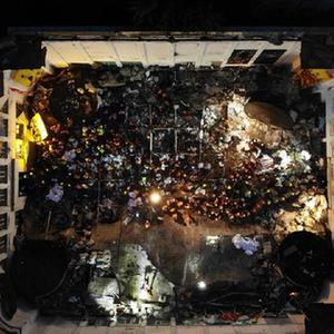 7月24日,消防救援人员在齐齐哈尔市第34中学体育馆屋顶坍塌事故现场救援。