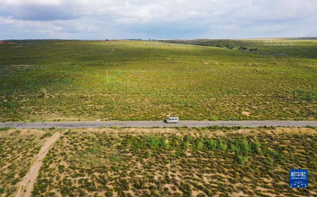 夏日时节,内蒙古自治区杭锦旗境内的穿沙公路绿意盎然,绿色沿着道路前行,并向两旁的沙地铺展,犹如一条条“绿色动脉”在库布其沙漠中绵延。