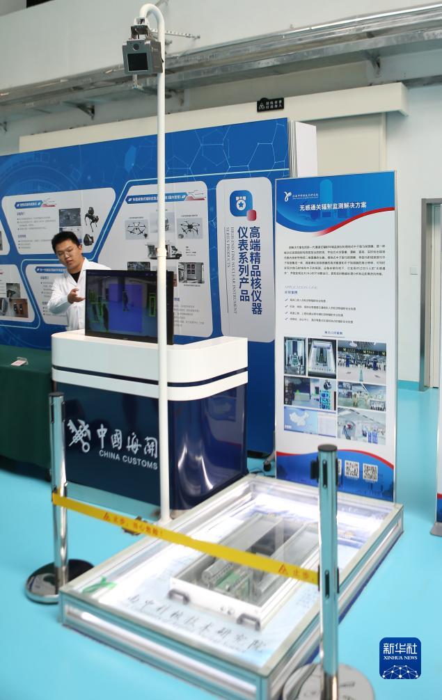 7月24日,在济南中科核技术研究院,工作人员在讲解无感通关辐射监测解决方案。新华社记者 张浩波 摄