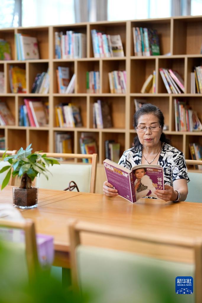 7月25日,老年人在河北省唐山市路北区橡树湾社区养老服务中心阅读。
