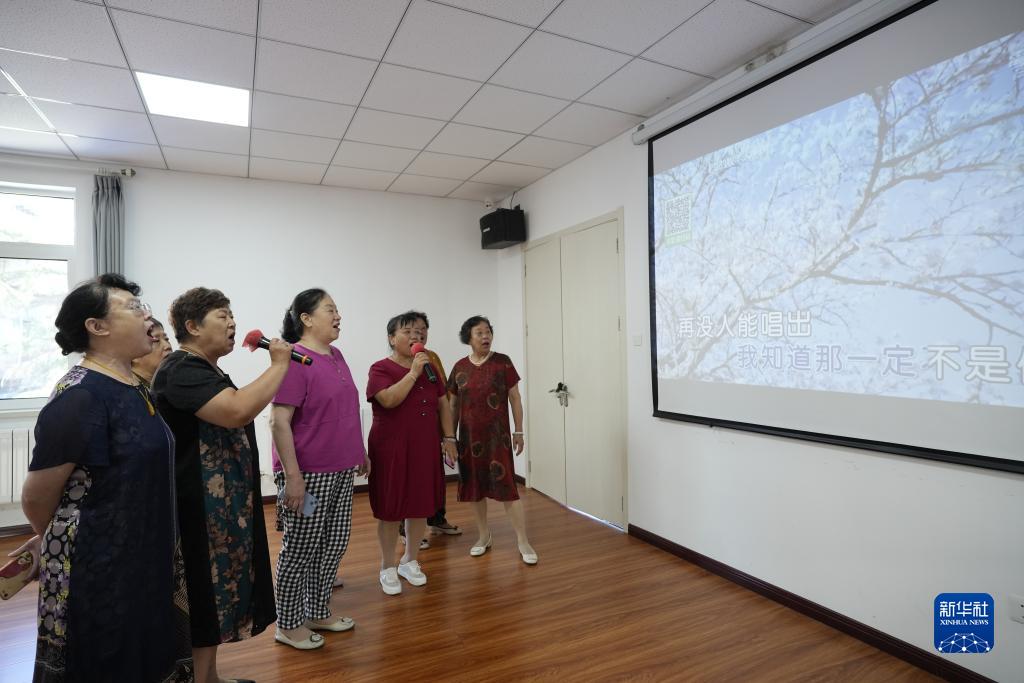 7月25日,老年人在河北省唐山市路北区煤研分院社区养老服务中心唱歌。