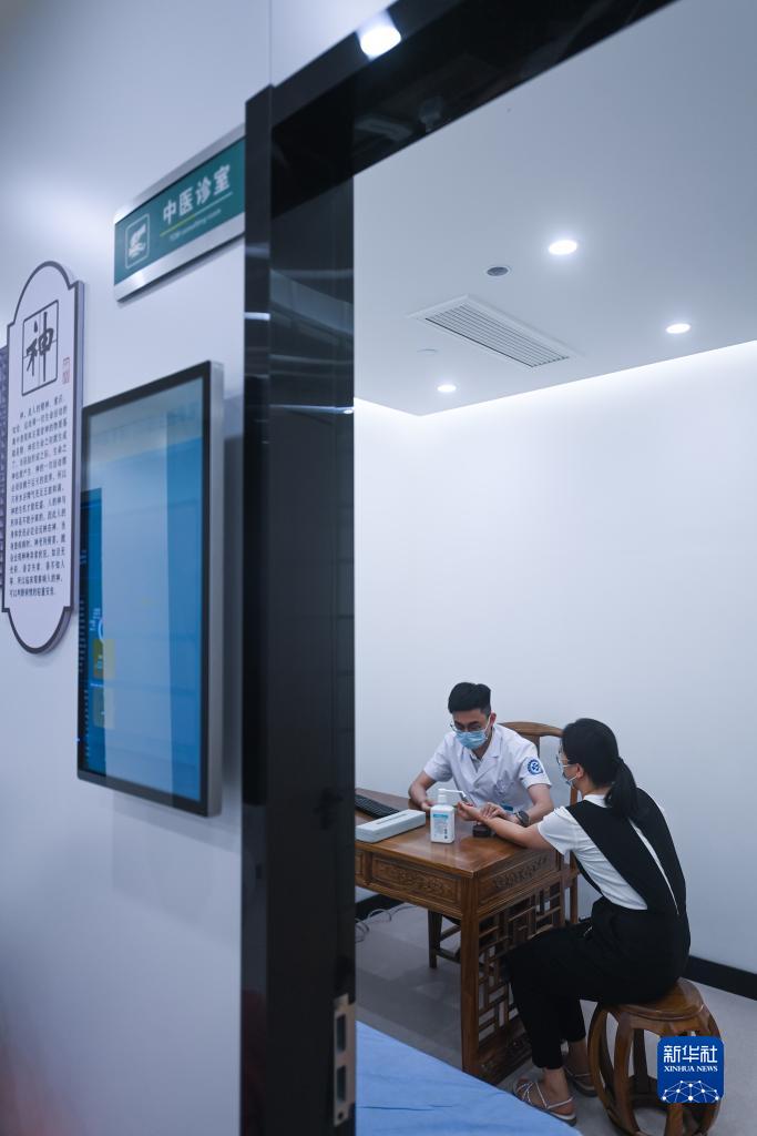 7月25日,在诸暨市浣东街道东盛社区卫生服务站的中医诊室内,医生在进行中医诊疗。