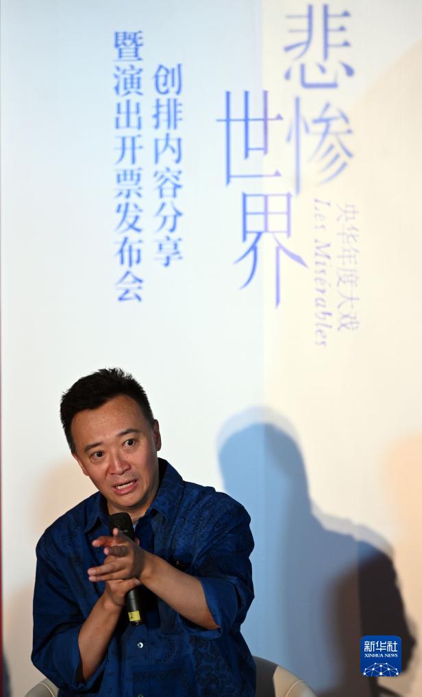 7月25日,话剧《悲惨世界》监制王可然出席发布会。
