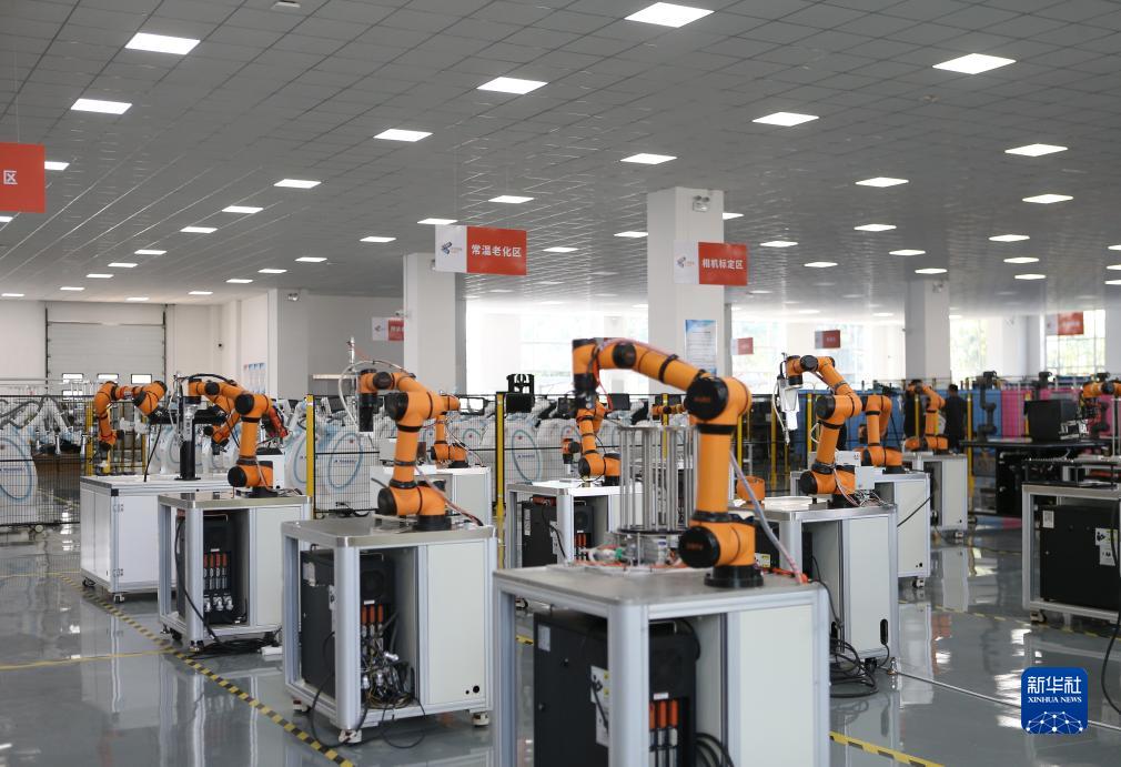 这是7月25日在遨博(山东)智能机器人有限公司拍摄的协作机器人。