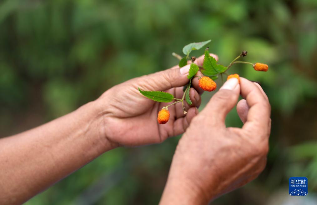 7月23日,张普忠为孩子们找到一种野果。新华社记者 费茂华 摄