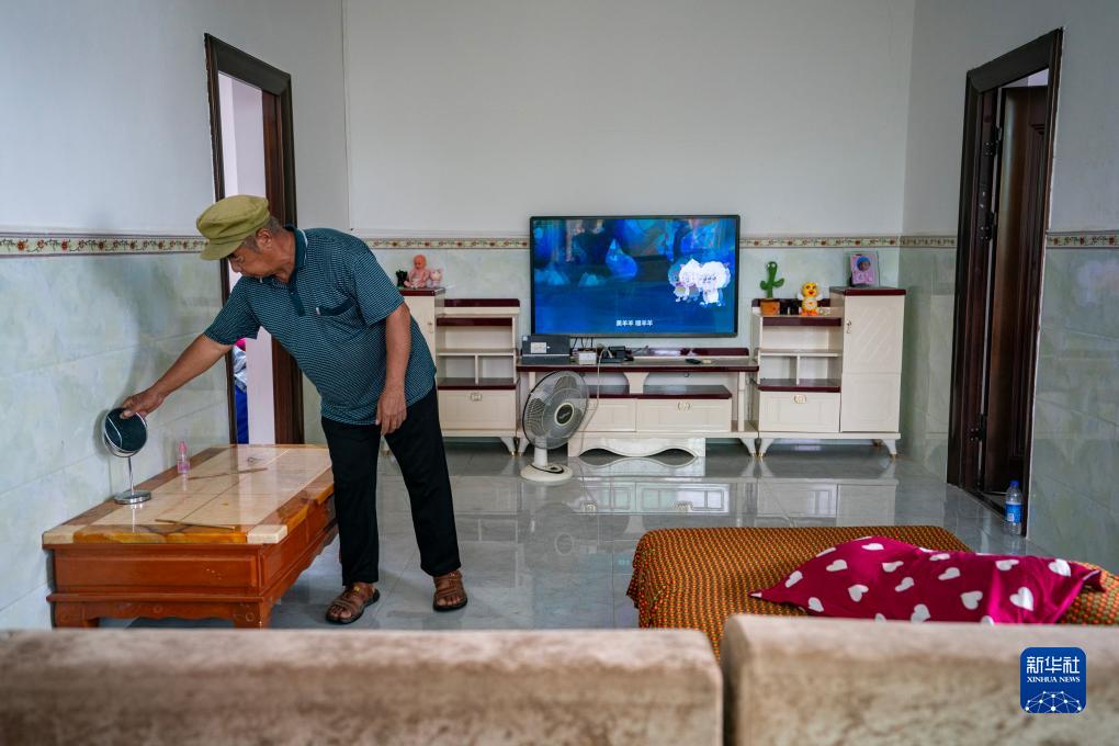 张普忠收拾客厅准备出门(7月23日摄)。新华社记者 陈欣波 摄