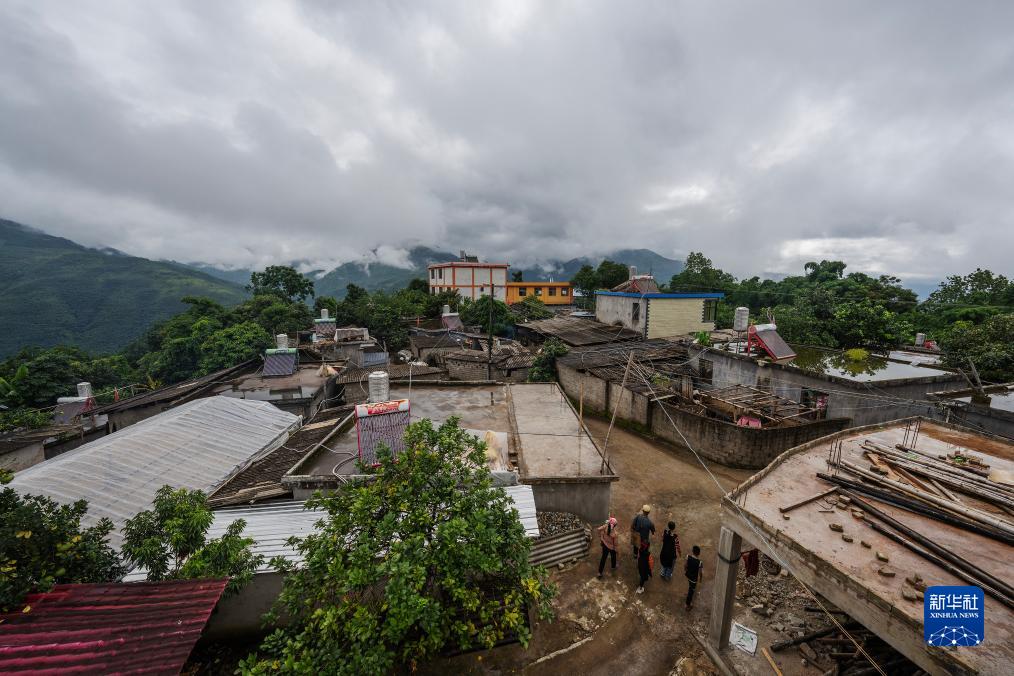 7月23日,张普忠和家人步行穿过村子。新华社记者 费茂华 摄