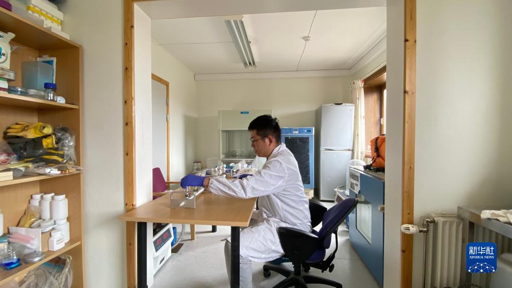 7月25日,一名中国科考队员在挪威斯瓦尔巴群岛新奥勒松的中国北极黄河站工作。
