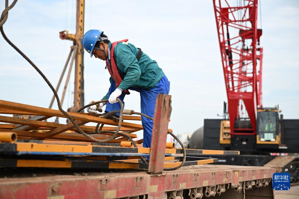 7月26日,中铁大桥局施工人员在池州长江公铁大桥南岸主墩钻孔桩施工现场作业。