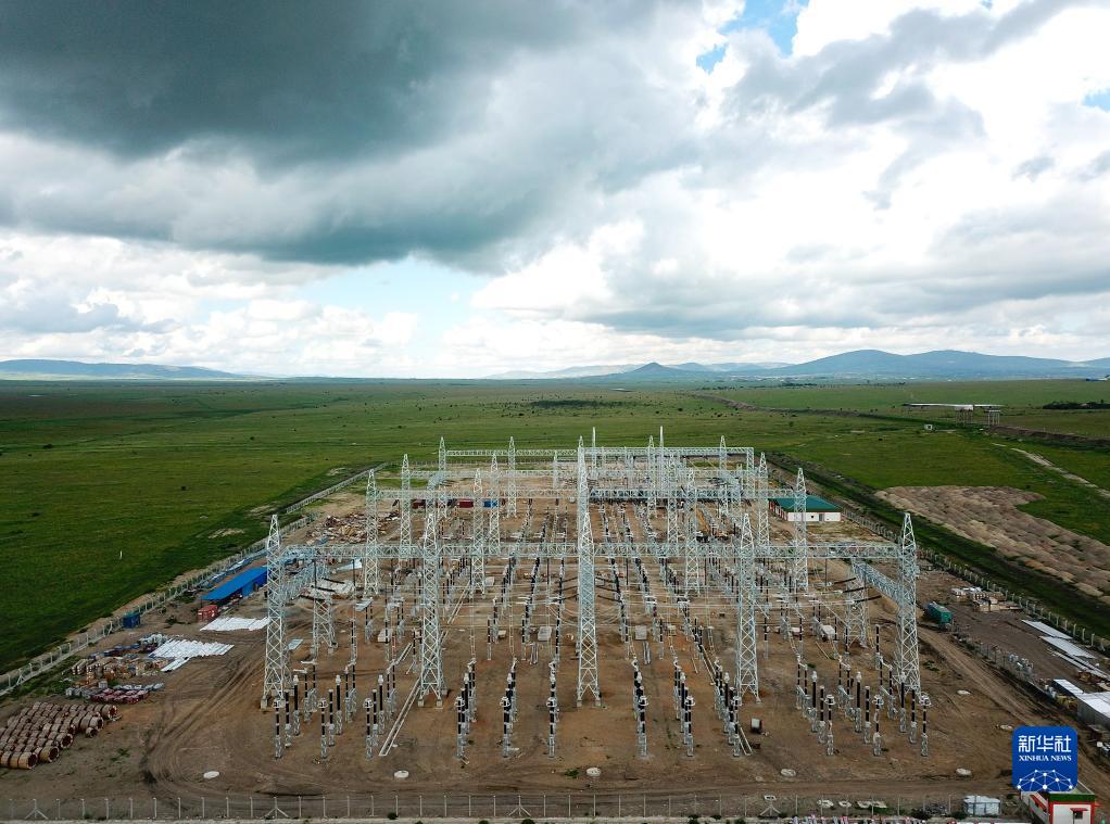这是5月5日在肯尼亚马查科斯郡拍摄的建设中的孔扎变电站(无人机照片)。