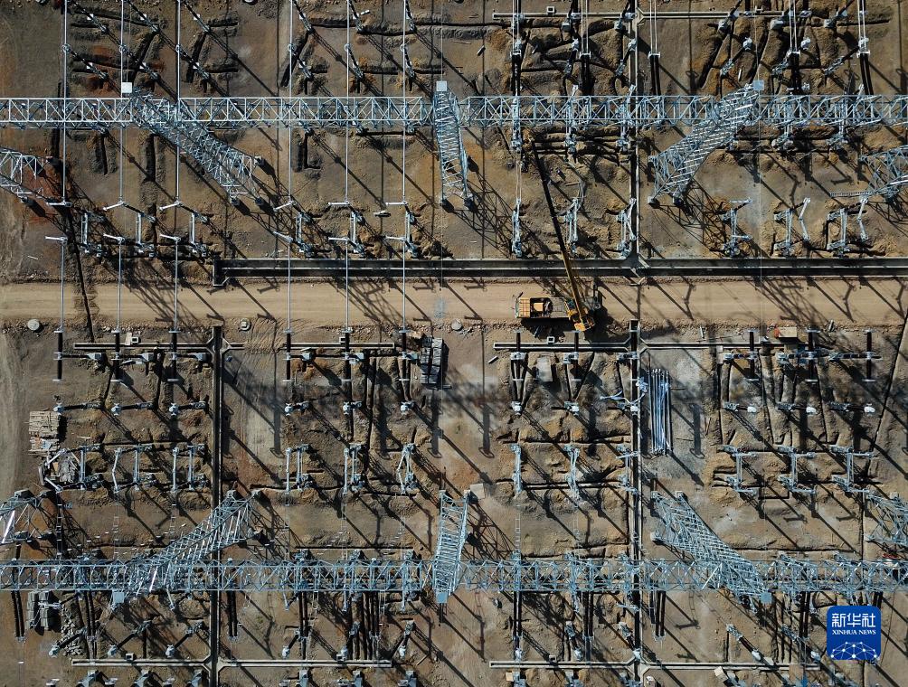 这是6月12日在肯尼亚马查科斯郡拍摄的建设中的孔扎变电站(无人机照片)。