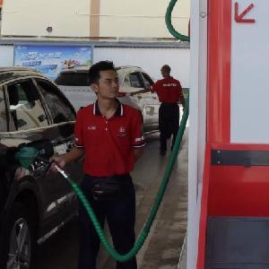 7月26日,石家庄市栾城区一加油站的工作人员给车辆加油。