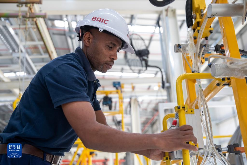 今年45岁的南非人邦加尼是北汽南非工厂设施和设备保全组的一名电工。他2018年入职,在位于南非东开普省伊丽莎白港库哈开发区的北汽南非工厂已工作5年,最初是汽车生产线的一名装配工人。工作之余邦加尼积极参加工厂组织的技能培训,于2021年取得电工证。如今,邦加尼与十余名同事一起工作,负责与电气设备相关的维修、维护及调试工作。