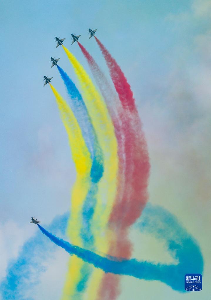 开幕式上,歼-20以四机编队进行机动飞行展示,运油-20首次同时与歼-20、歼-16进行空中加油通场展示,歼-10S、歼-11BS首次进行异型机模拟空战展示……本次航空开放活动集中展示了人民空军加快建设世界一流空军的阶段性成果。