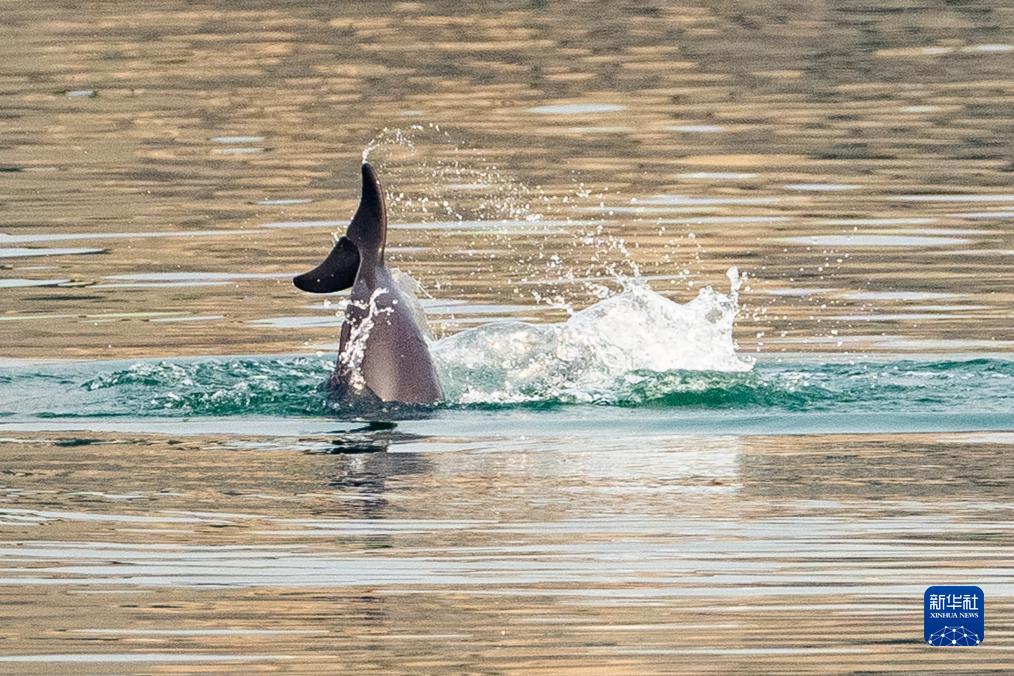 2月27日,在湖北省宜昌市江边,长江江豚在水中嬉戏。