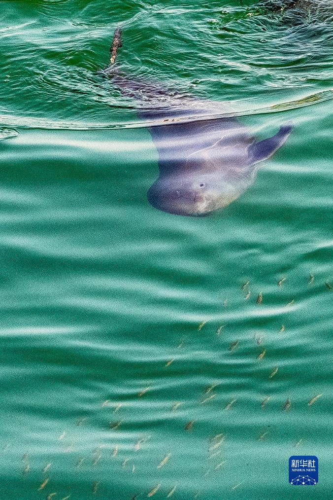 2月19日,在湖北省宜昌市江边,长江江豚在水中捕食。