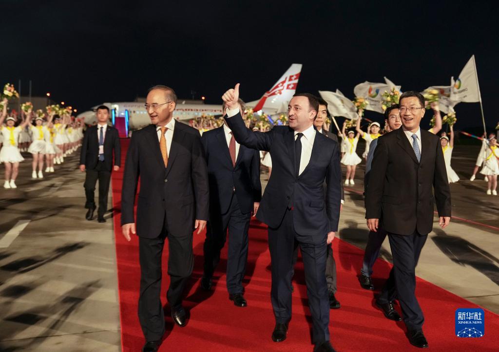 来华出席成都大运会开幕式并访问的格鲁吉亚总理加里巴什维利抵达四川省成都市