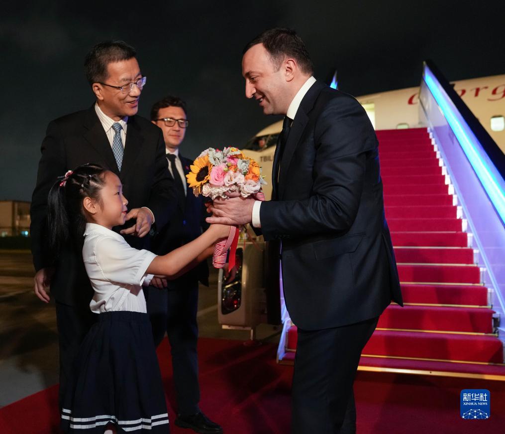 来华出席成都大运会开幕式并访问的格鲁吉亚总理加里巴什维利抵达四川省成都市