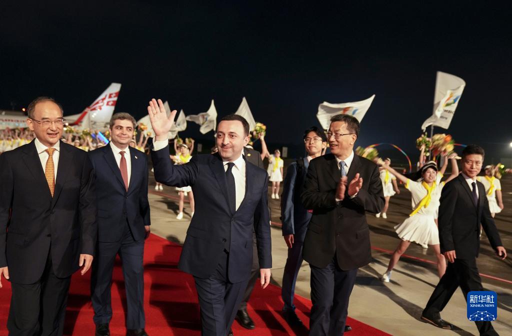 来华出席成都大运会开幕式并访问的格鲁吉亚总理加里巴什维利抵达四川省成都市