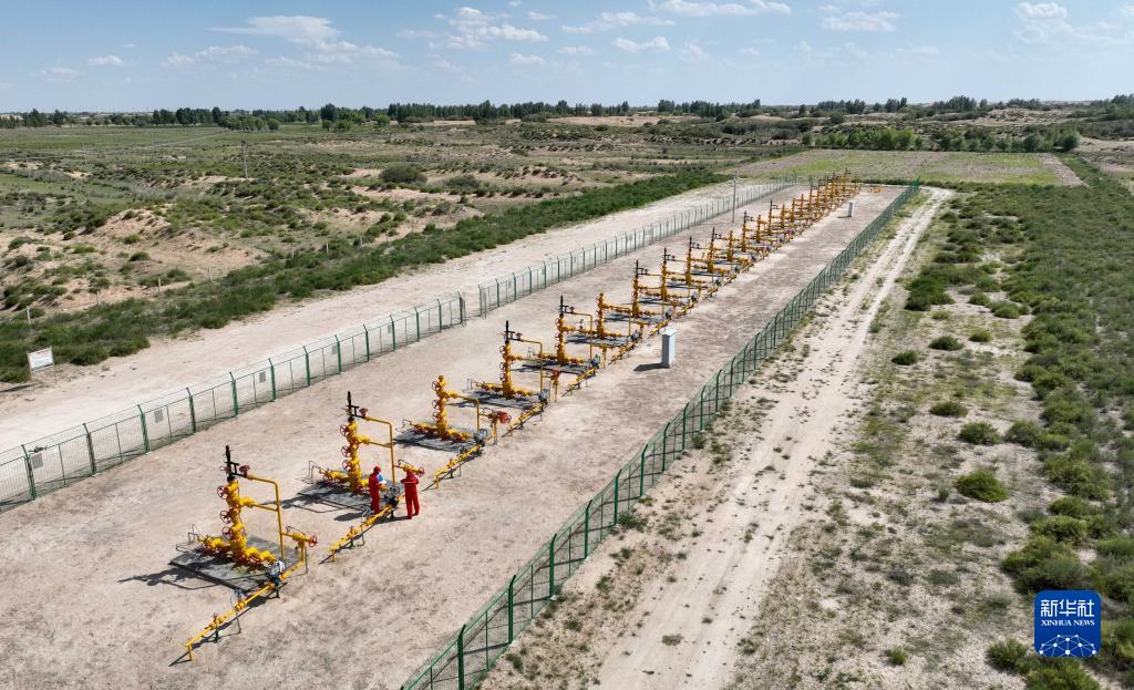 长庆油田最大的丛式井组(7月25日摄,无人机照片)。丛式井技术的推广使气田减少了用地。