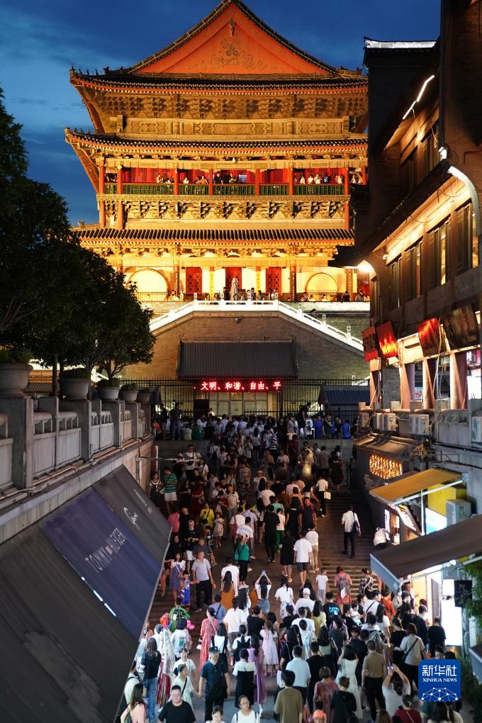 暑期以来,陕西西安市区的夜晚热闹非凡,各大景点和许多消费场所人气旺盛。