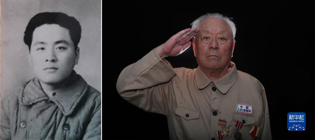 杨殿生(拼版照片,2020年8月13日摄),1932年1月出生,辽宁大连人。1947年11月参加革命工作。1950年10月编入中国人民志愿军暂编汽车44团2连当汽车助手,1958年10月从朝鲜回国。