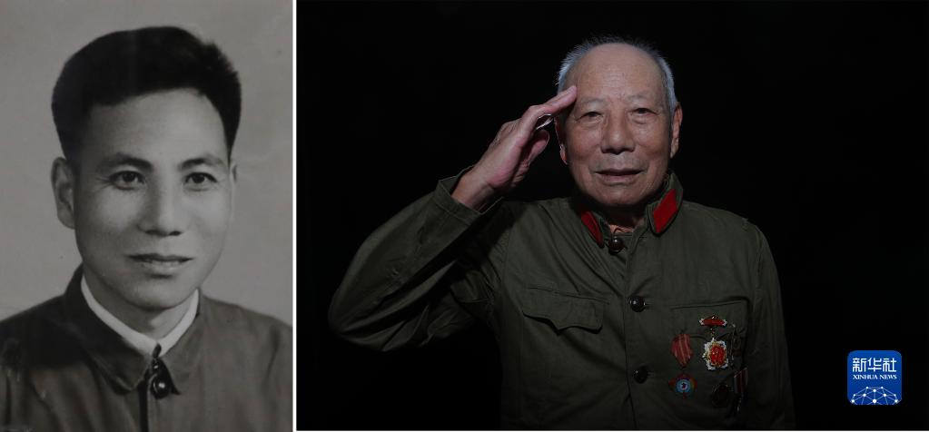 程龙江(拼版照片,2020年9月16日摄),1931年3月出生,1948年参军,1950年10月入朝作战,1953年回国。