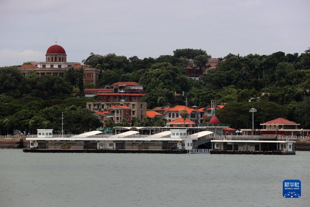 7月27日拍摄的受台风影响临时关闭的福建厦门鼓浪屿三丘田码头。