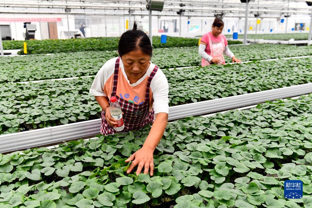 7月27日,在位于莒县的山东种业集团数字化农业示范园,工作人员在管护种苗。