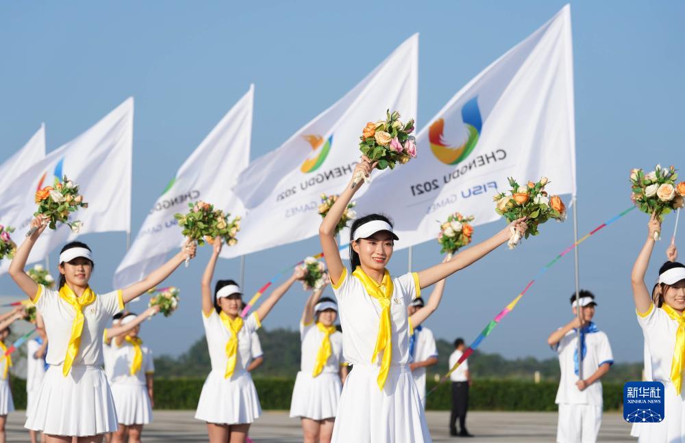 7月28日上午,来华出席成都大运会开幕式并访问的布隆迪总统恩达伊施米耶抵达四川省成都市。这是欢迎仪式现场。