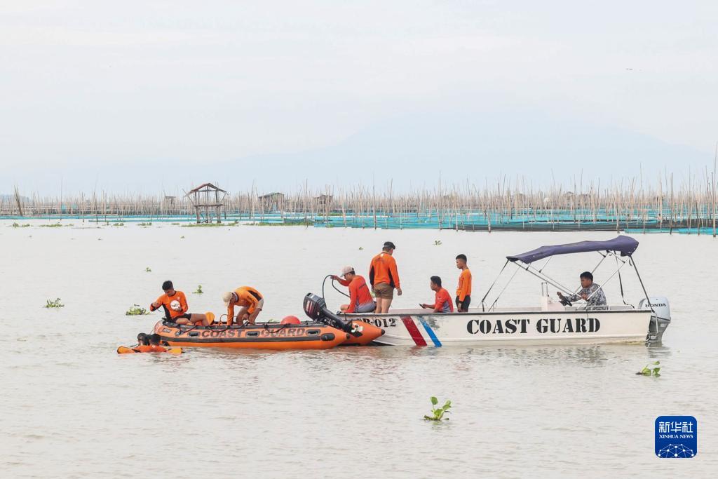 7月28日,在菲律宾黎刹省,菲律宾海岸警卫队成员在倾覆船只事故现场开展搜救行动。