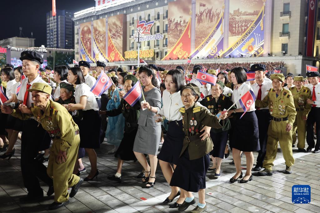 朝鲜27日在首都平壤金日成广场举行阅兵式,纪念祖国解放战争胜利70周年。