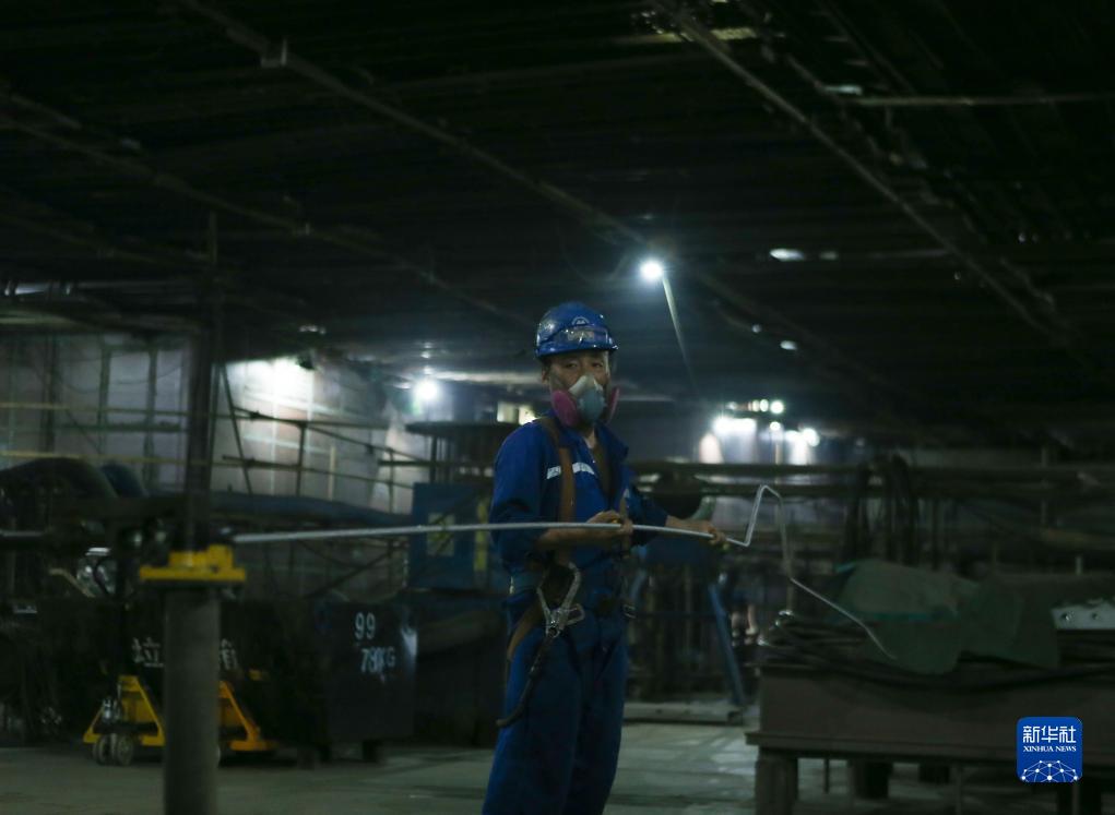 7月28日,招商局金陵船舶(威海)有限公司的工人在船体内部作业。