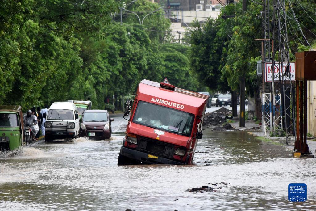 近日,巴基斯坦拉合尔强降雨导致局部内涝,给人们出行带来不便。